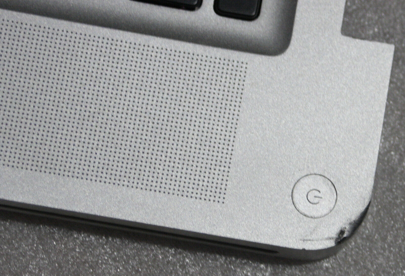 Working, damage to top right corner, has other signs of wear and a very small dent to right just bellow the keyboard.